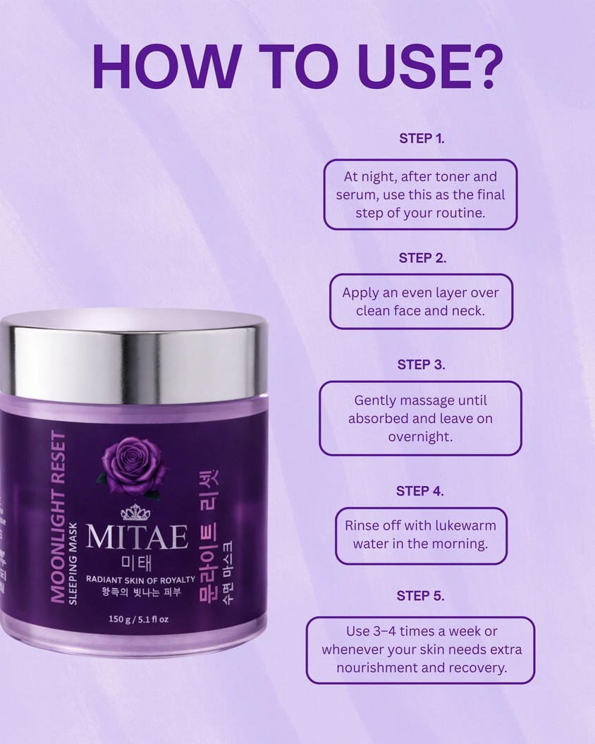 Wake up to skin that looks like it slept for twelve hours with Moonlight Reset Sleeping Mask, an indulgent overnight treatment designed to restore, replenish, and reset tired skin while you dream. Encased in a royal purple jar, this mask turns your nighttime routine into a spa‑like ritual, leaving your complexion plump, calm, and glowing by morning.